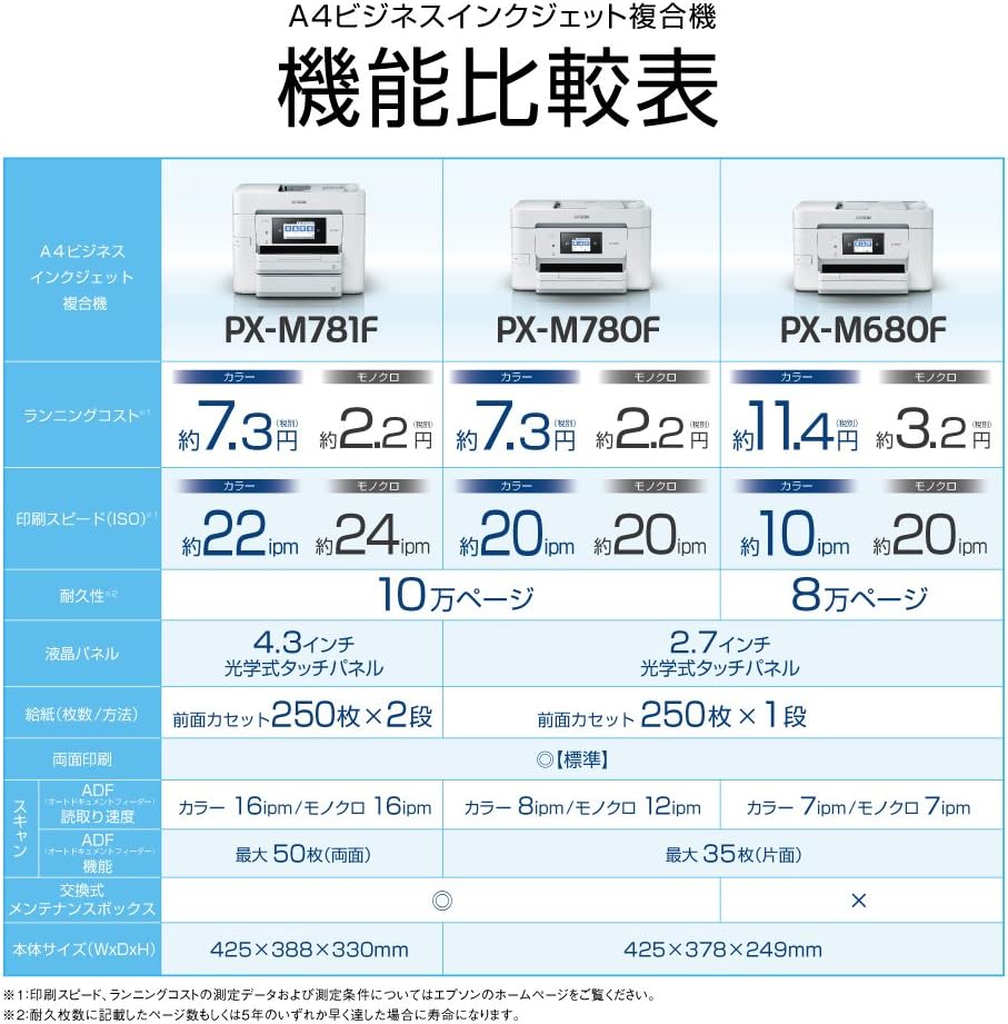 特にPM-780は、SOHOや本格的な事務仕事での用途を想定し、毎日多くの出力を擦る前提で10万枚クラスの耐久性を追求している機種だといえます。