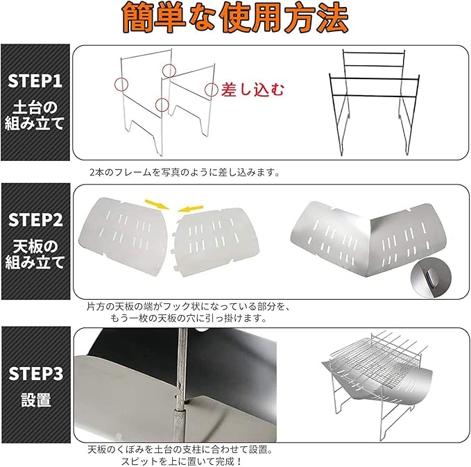 焚き火台だけ買ってこれらアイテムを別に選んで揃えるとなると下手をすると1万円近く使ってしまうこともあります。 そういう点で、悪かろう安かろうという点を気にすることなく、安価なセットモノを選ぶのをおススメします。 特におススメなのが、バーベキューができる網焼きがセットになっている点です。家族キャンプのだいご味と言えば、やはりBBQではないでしょか。 この焚き火台は、焚き火や炭火をつくって、上に網をのせることで、バーベキューができる点が超おススメです。また調理器具を乗せて調理もできたりしちゃいます。 こいう使い勝手は、それなりにキャンプ経験をつまないと気づかない点かと思いますが、この値段で揃えらることを考えると間違いなしと言えると思います。