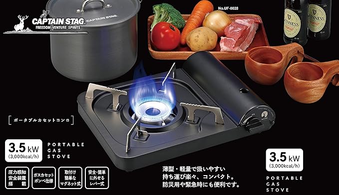 [商品名]:キャプテンスタッグ(CAPTAIN STAG) バーベキュー グリル コンロ カセットコンロ 卓上 ポータブル カセットコンロ ブラック UF-0028 幅342×奥行270×高さ86mm