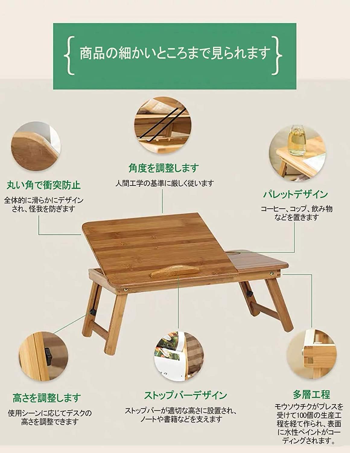 Banbooテーブルのおススメとして、本来はアウトドア向け商品ではないですが、このBamboo机をお勧めします。