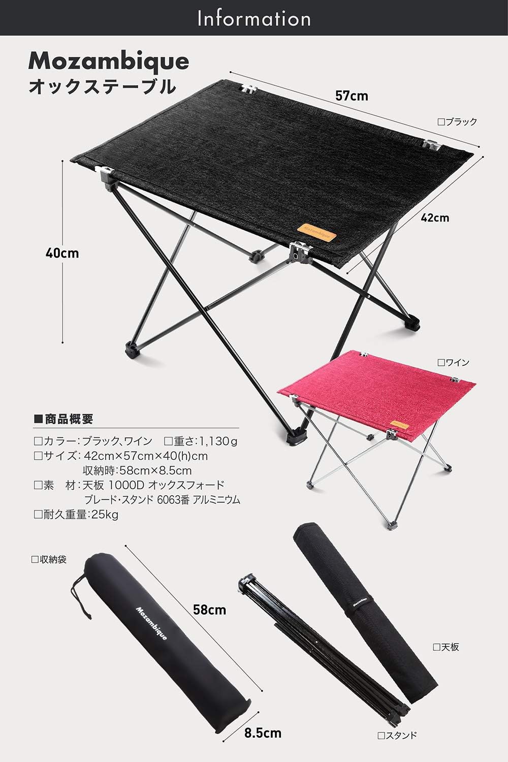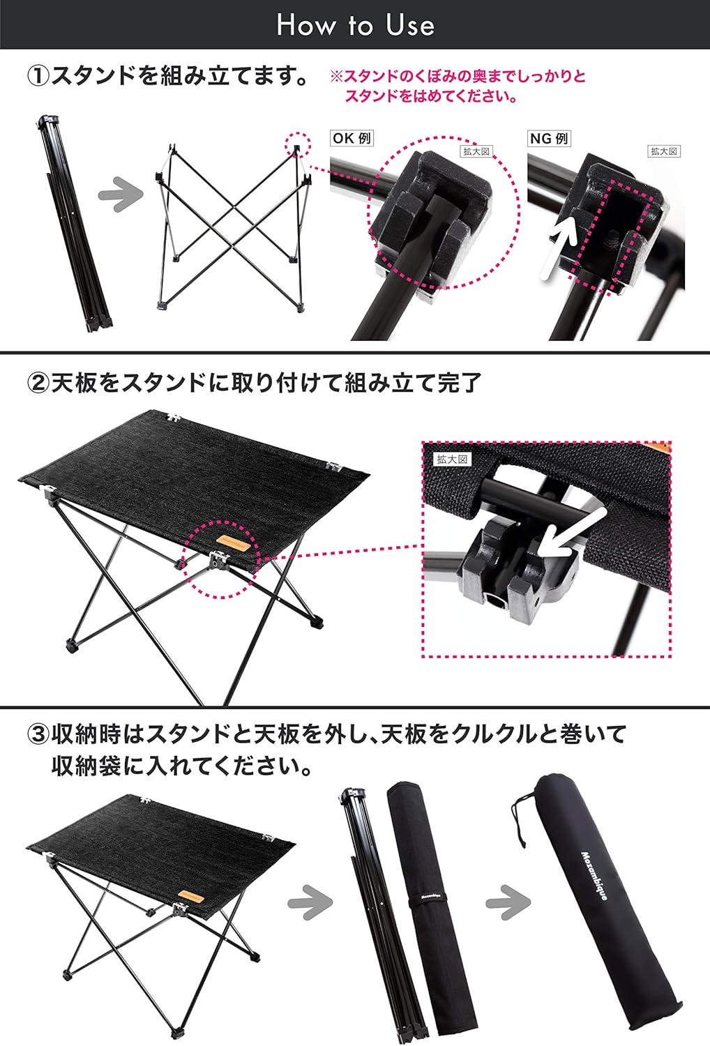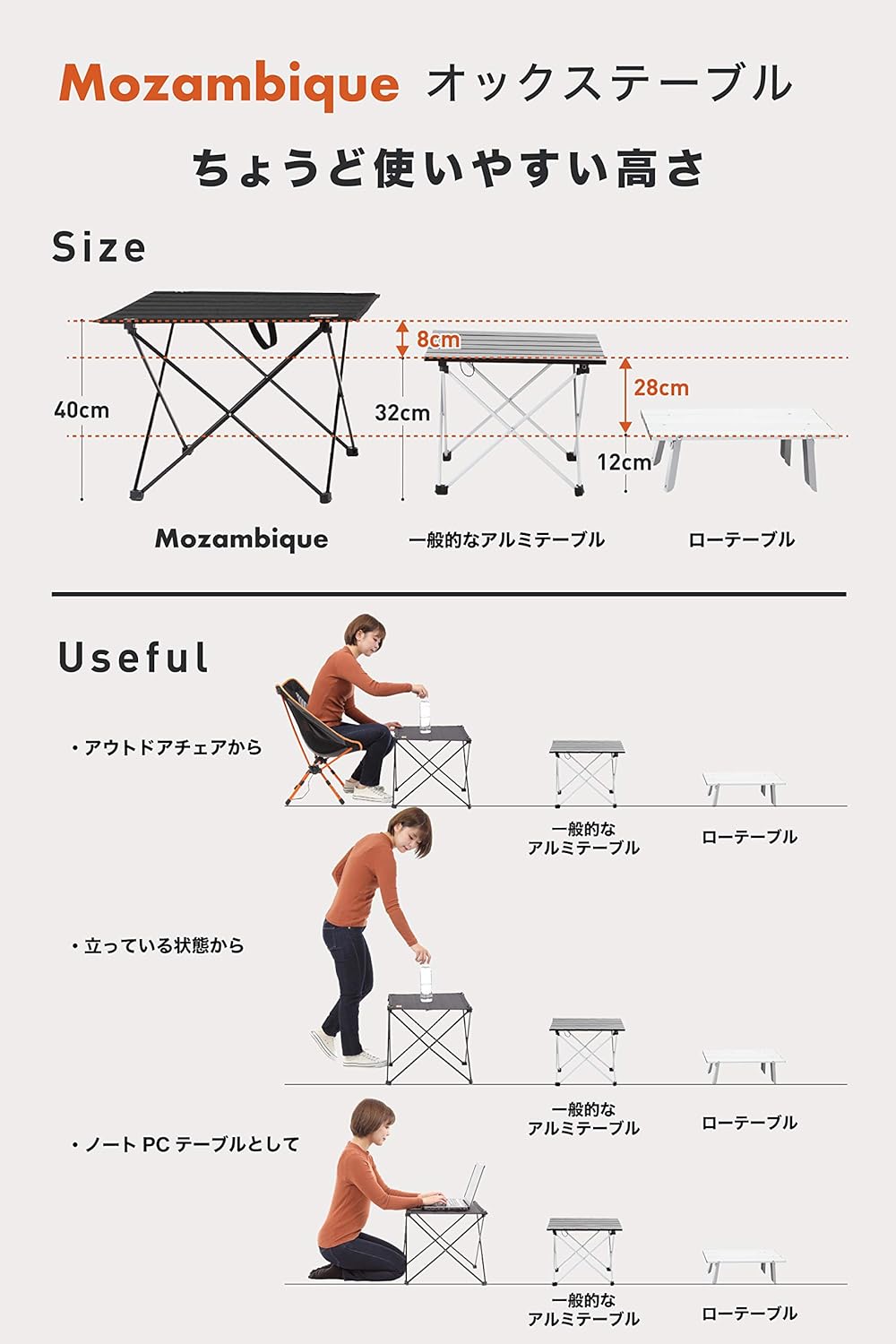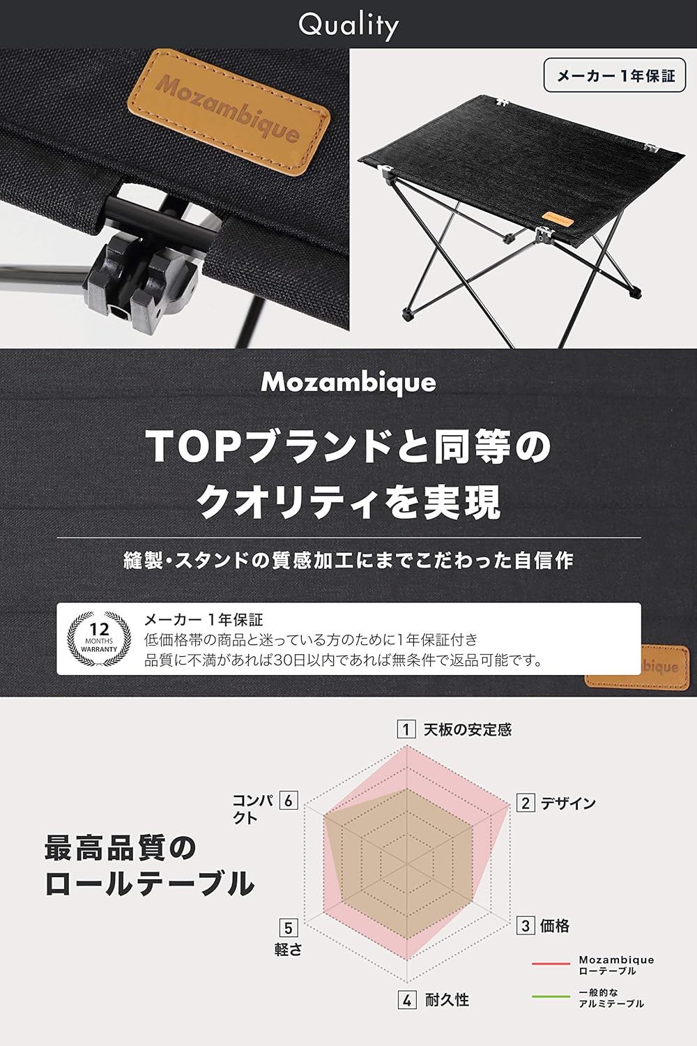 このテーブルはとにかくコンパクトでいて、設営が超簡単という点が気に入っています。
